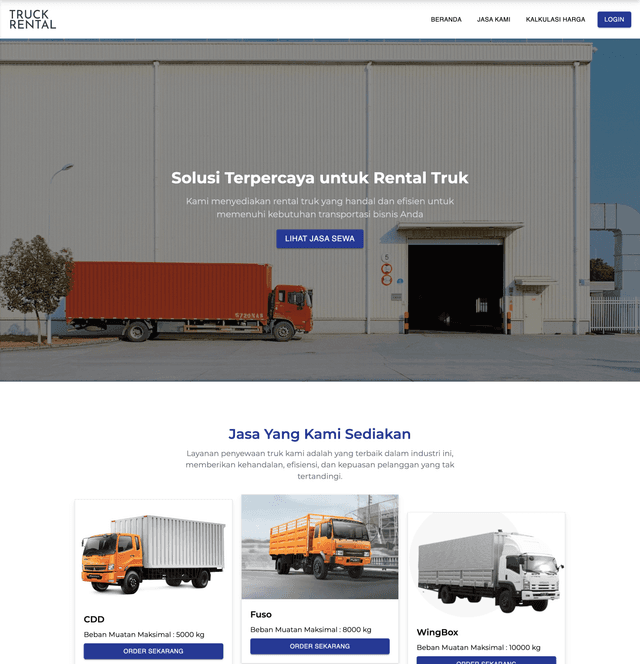 'Truckrentals' is a website application that makes it easier for truck rental seekers to provide truck rental services to various regions in Indonesia